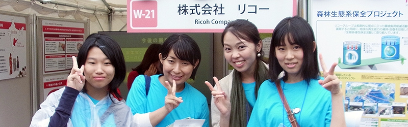 「グローバルフェスタ」は、毎年10月6日の「国際協力の日」を記念して開催される国内最大級の国際協力イベント。楽しくて分かりやすい行事を通じて来場者に国際協力をより身近なものに感じてもらい、国際協力の現状・必要性等についての理解と認識を深めてもらうこと、さらに国際協力への参加を促進することを目的に行われています。リコーもブースを出展し、インドでの教育支援等の活動や、ガーナ等、世界7箇所で行っている森林生態系保全プロジェクトを紹介しました。
