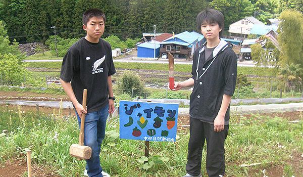 なぜか一年越しのプロジェクトになっていた自然塾5つの畑の看板作り。今回、OB二人の中3コンビがやって来て、ついに看板を完成させ、畑に立ててくれました!