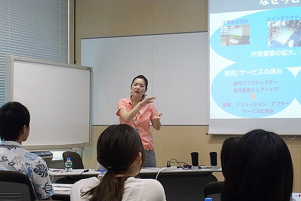 何度かの失敗を乗り越え、ご自身が開発した製品『超短焦点プロジェクター』を世に出した奥村さんは、会社でも私生活でも自分で枠を決めず「はみでちゃう」ことが成功を呼び込むコツではないか!?と、体験談を交えて楽しくお話しくださいました。