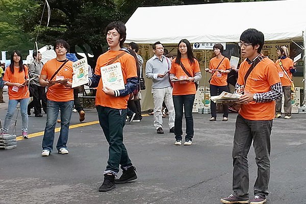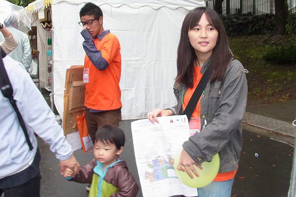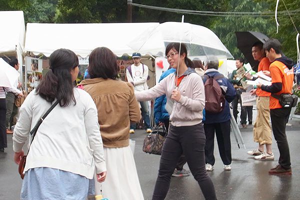 参加した卒塾生は、10月4日、5日は小雨が降る寒い中、6日はとても蒸し暑い中、会場設営〜プログラム配布〜来場者カウント〜メインステージ〜ワークショップや写真展等の運営を行いました。休憩時間には様々な国で活動するNGOのブースを見学したり、フードコーナーで世界の美味しい食べ物を楽しんでいました。リコーブースにも立ち寄ってくれました。
