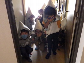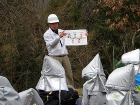 「今ステージはゴボウの穴掘りがあります。途中であきらめず、目標を決めたら最後までやり切ることが大切です。 また避難訓練やKYTもやります。東日本大震災では、避難訓練の通りに逃げた人が助かりました。自分が生き残るためにも、今回の訓練をきちんと行いましょう。KYTでは日常の中の危険を探してもらいます。危険と安全を考えながら、ステージを過ごしましょう。 |