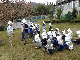| 地震からの火災発生という場面を想定し、避難訓練を行いました。 | |