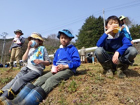 「ゴボウの穴掘り、みんなあきらめず、頑張ってくれました。ゴボウの収穫までは、6か月かかります。その間に、世話をしましょう。そんなに野菜は簡単にできません。今日も土作りをしました。基本的には土作りをしっかりしなくてはならない。土作りの大変さ、実感してくれたと思います。 共同生活目標は『人の話を聴く』でした。今回もはじめての体験がたくさんありました。私たちは会話をして生活しています。最後まで聴かないとその人の考えがわかりません。自然塾の中だけではなく、学校などでもぜひ実行してください。 |