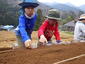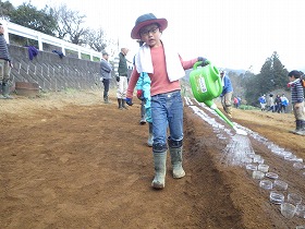 | ステージテーマ:「力一杯土を掘り、ゴボウの種を植えよう!」 共同生活の目標:「人の話を聴く」 |