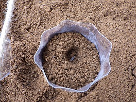 ゴボウは発芽のときに、お日様の光をたくさん必要とします。かけすぎに注意して、種に土をかけました。 |