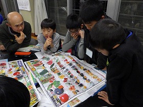 | 第3ステージで、育てたい野菜や作付け図を発表します。夜は第1ステージに引き続いて、チーム農園の計画を行いました。 | |