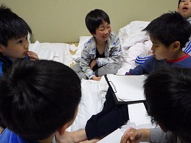 | 「他のチームの人と寝てみたい!」 「チームで新たな遊びを作りたい!」 「何かあったときは、謝るようにしよう。」 などたくさんの意見が出ました。 |