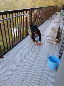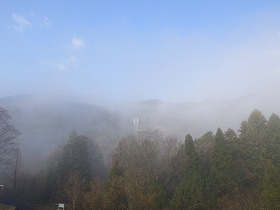 | 「霧の中にいるよ!」 いつもとちょっと違う風景の中でのベランダ掃除となりました。 |