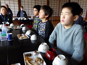 前回より少し長く、1分半に挑戦しました。 しーんと静まり返った食堂では、外から鳥の声が聞こえてきました。 |