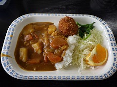・コロッケカレー(ジャガイモ、タマネギ、人参、サツマイモ) ・サラダ(キャベツ、人参、ブロッコリー) ・果物(頂きものミカン) |