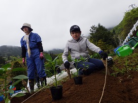 「雨が降って思うように作業ができなくて残念でした。しかし、夏野菜の植え付け、雨の中みんな頑張り、丁寧に行えました。 今朝は0℃以下になりました。自然は厳しいですね。残念なことにジャガイモ、お茶の成長に響くことでしょう。人が太刀打ちできない、そういうことが起こります。 |