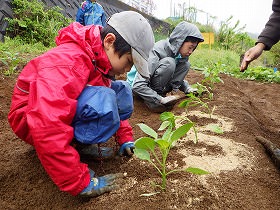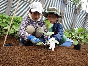 「夏野菜の植え付けを丁寧(ていねい)に行おう!」