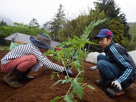 | 今回のステージでは夏野菜の植え付けを行います。前回、苗を植え付けたことを思い出しながら、さらに作業を加えそれぞれの作物にあった作業を行いました。 共同生活目標は「整理・整頓」。苦手な塾生も多いと思います。ポイントを押さえ、できるところからコツコツと取り組んでもらいました。 |