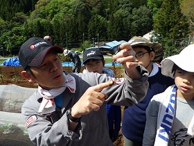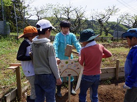 「前回植え付けの基本を行いました。覚えていますか?今回の夏野菜の苗は前回より丁寧に扱うこと、思いやりをもって行いましょう。そして、チーム農園で自分たちが植え付けるときに役立てましょう。 これから気温が上がり、作物の成長と共に農家の方々は大変です。肥料、雑草取りなどの世話が必要になってきます。 |