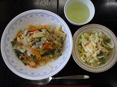 ・あんかけ固焼きそば(新タマネギ、人参、ネギ、チンゲン菜、小松菜、キャベツ、椎茸、タケノコ) ・肉まん(新タマネギ、椎茸、タケノコ) ・冷凍湘南ゴールド(いただきもの湘南ゴールド) |