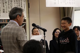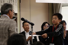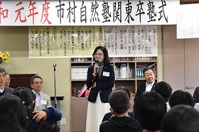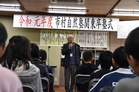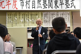 「皆さんは自然塾の中で大切なことを学んだと思います。自分がいて、家族・友達・仲間がいて、自然の恵みがあって、積み重ねてきた知恵や工夫があって、そういった中で支え合って生きていく。それがどれほどありがたいことなのか、わからなくなったら、一度自然塾でやったことを思い出してください。皆さんでしたら、あらゆる命を大切にして、敬意を払って、今よりの一回りも二回りも大きな人になることでしょう。改めて卒塾、おめでとうございます。」 |