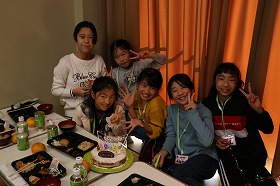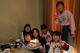 | この日がちょうど誕生日だった塾生もいたので、ケーキでお祝いをしました☆ | |