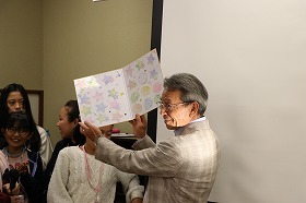 今年で高津戸塾頭は塾頭としての任務が終わりになります。そこで女子塾生から、コメントが書かれた色紙を渡してくれました。 塾頭さんへ、サプライズでした。 |