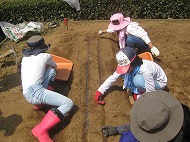 ニンジンの種まき: チーム農園で種まきしました。細かい作業で結構大変だ~。 |