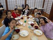 塾庭でみんなとごはん: いつもと違う場所で、机を並べて食べるご飯は楽しいし、おいしい! |