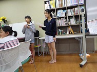 塾生企画の司会進行: 「それでは各企画で発表してください。」前に立って話す事に慣れたかな? |