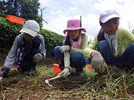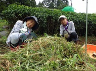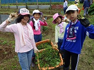 | ゴボウの草取り: たくさん草が入っているプラミをみると、達成感があるね! |