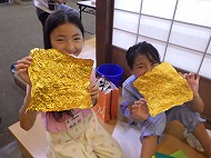| 自由時間: 「見て!」金の折り紙を丸めて広げるとまるで金箔をはった和紙のよう?! |