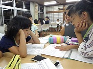 親子大会塾生企画: ほかのチームの人と一緒に、企画の時にやりたいことをワイワイ相談ました。 |