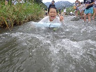 川遊び(いかだ): 流れが早いところで渾身のピース!川をまんきつしたね。 |