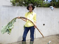| 収穫祭、食材収穫: 立派に育ったダイコンを収穫!スポーンと気持ちよく抜けました。 |
