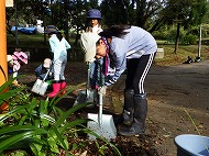 | 地域清掃ボランティア: 道路に積もった落ち葉や泥をさらいました。きれいになったね!! |