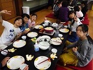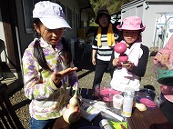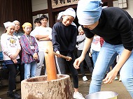 餅つき: 「よいしょ」の掛け声でお餅つき。餅のように粘り強い人になってね。 |