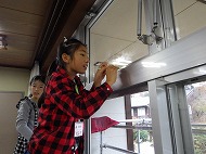 掃除の時間: 掃除の終わりに記念撮影。みんな、よく入ったね! |