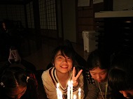 お別れ会: ロウソクを囲んで、メッセージカードを交換。どんなメッセージを受け取ったのかな?? |
